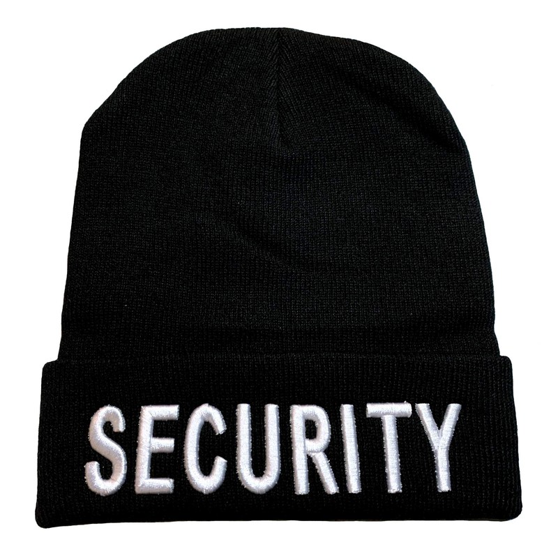 • Includes (2) 9' Black "Security" Cuffed Beanie/Skull Cap