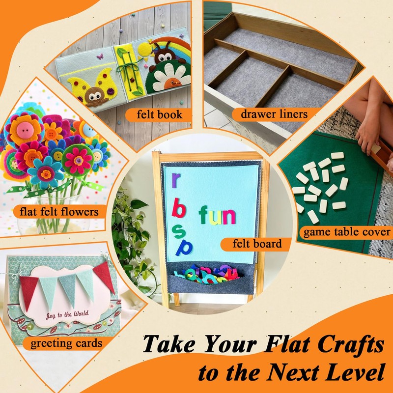 - Suitable for Flat Crafts: This felt fabric is perfect for a variety of flat craft projects that require structure and durability.It's great for drawer liners, felt board, felt books, flat felt flowers, game table covers, furniture pads and so on