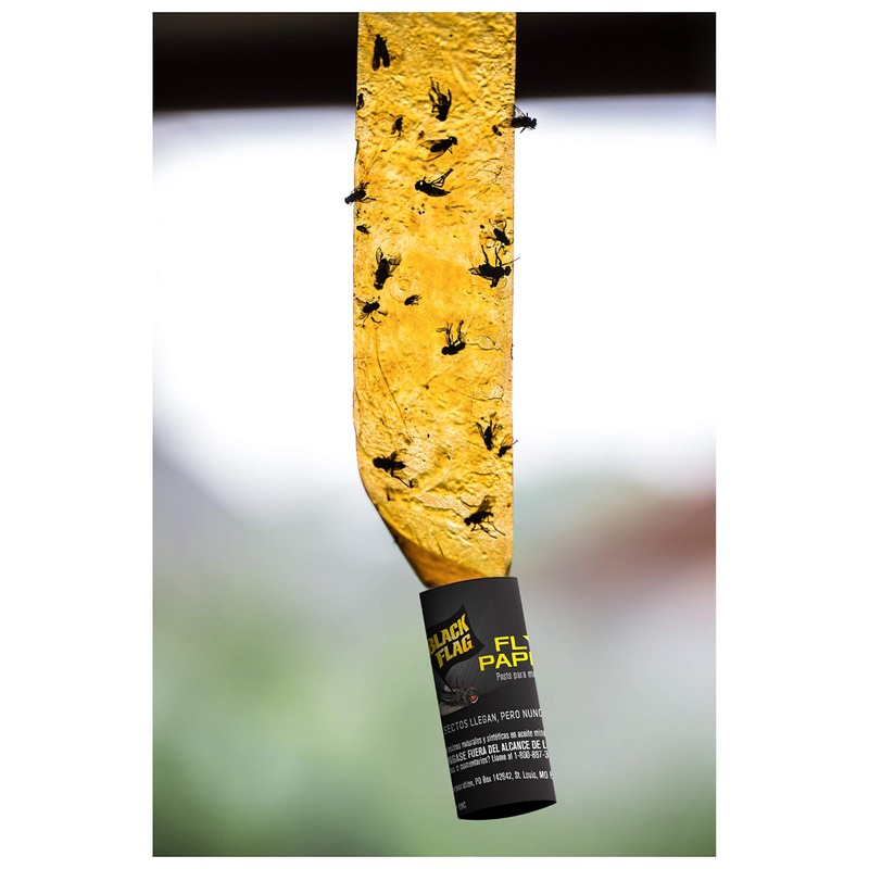 Insects invading your corner of the world? Whatever insect you're fighting, Black Flag products are dedicated to providing the tools you need to regain control. With formulas that act fast and never back down, Black Flag insect controls have been arming homeowners in the battle against invading bugs for more years than any other brand.flies And other flying insects can be a real aggravation when they invade your home, porch, patio or garden. Black Flag fly paper traps houseflies, mosquitoes and other annoying flying pests anywhere flying insects are a nuisance, both indoors and outdoors. The trap provides long-lasting protection after opening C once they land on the sticky fly paper, they never leave. Before using the black fly paper trap, bring the trap to room temperature if cold. Slowly pull out the ribbon using a twirling motion. Hang the trap away from sunshine. To control gypsy moths, wrap the tree trunk with Black Flag fly paper at a height of approximately 4 feet. As gypsy moth caterpillars make their way up the tree to reach the leaves, they must attempt to cross the trap. Contact with the sticky trap surface prevents the insect from crawling further. Remove the trap when it is full of insects C wrap in newspaper and discard in the trash.