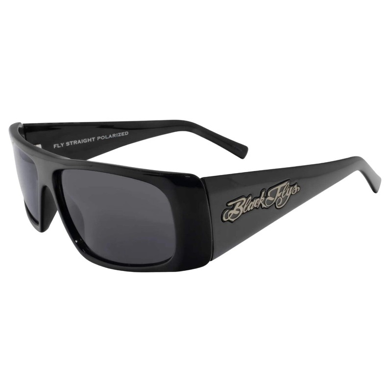 Black Flys Fly Straight Sunglass Shiny Black w/Smoke Polarized Lens