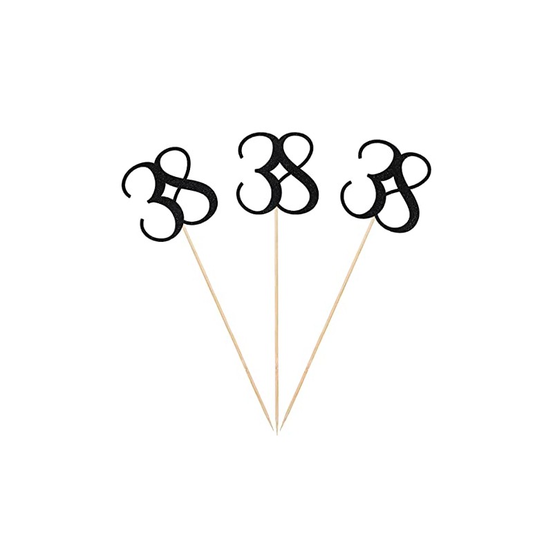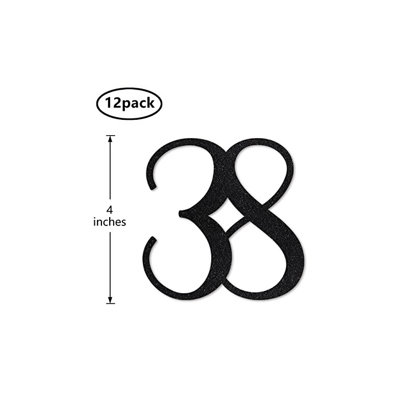 Black Glitter 38th Birthday Centerpiece Sticks, 12-Pack Number 38 Table Topper Anniversary Party Decorations