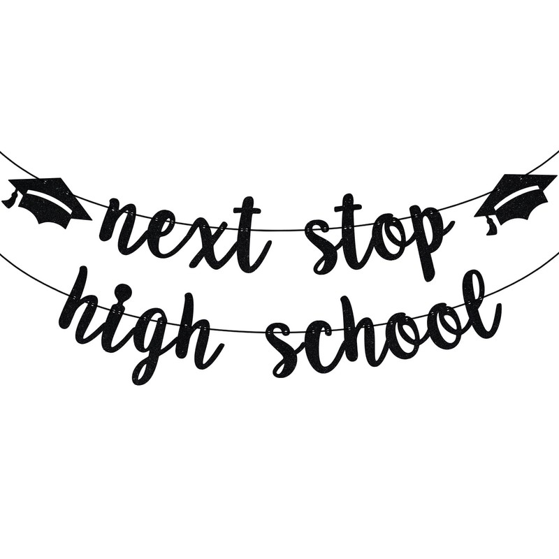 Black Glitter Next Stop High School Banner, Congrats Grad/Congrats 2025/Class of 2025, 2025 High School Graduation Party Decorations Supplies