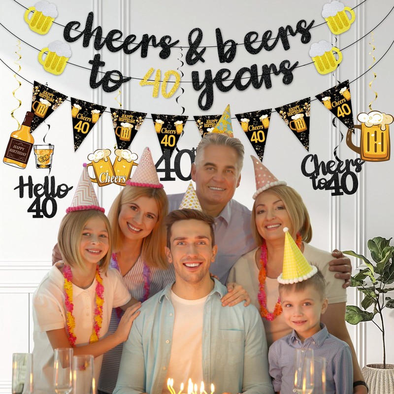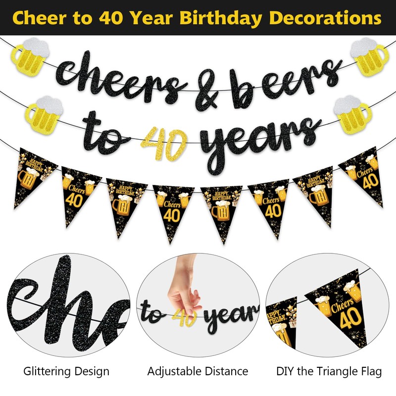 - Easy to Decorate: "Cheer to 40th years" banner is pre-strung, easy to hang. 40th birthday decorations for him mean a brand new chapter to one's life and you deserve a special way to enter it, and enjoy your time with friends or families at such a fancy night by using our 40th party decorations