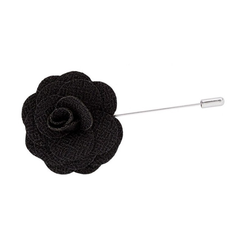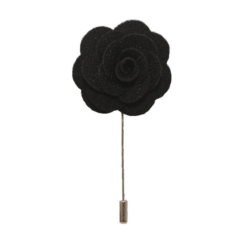 Black Handmade Flower/Rose Lapel Pin for wearing with men's suit jacket, blazer, dinner jacket or tuxedo jacket