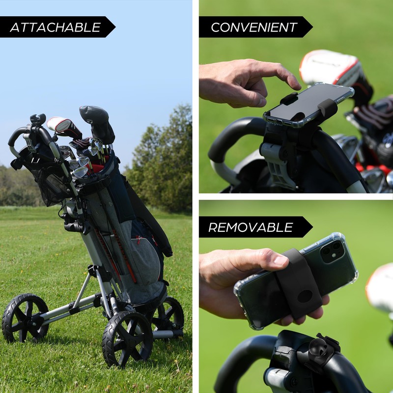 - Enhance your golfing experience: Keep easy access to your phone during your golf game with our silicone golf pull cart phone holder. The phone holder makes a pleasant interaction with your GPS golf app or keeping your score on your digital scorecard