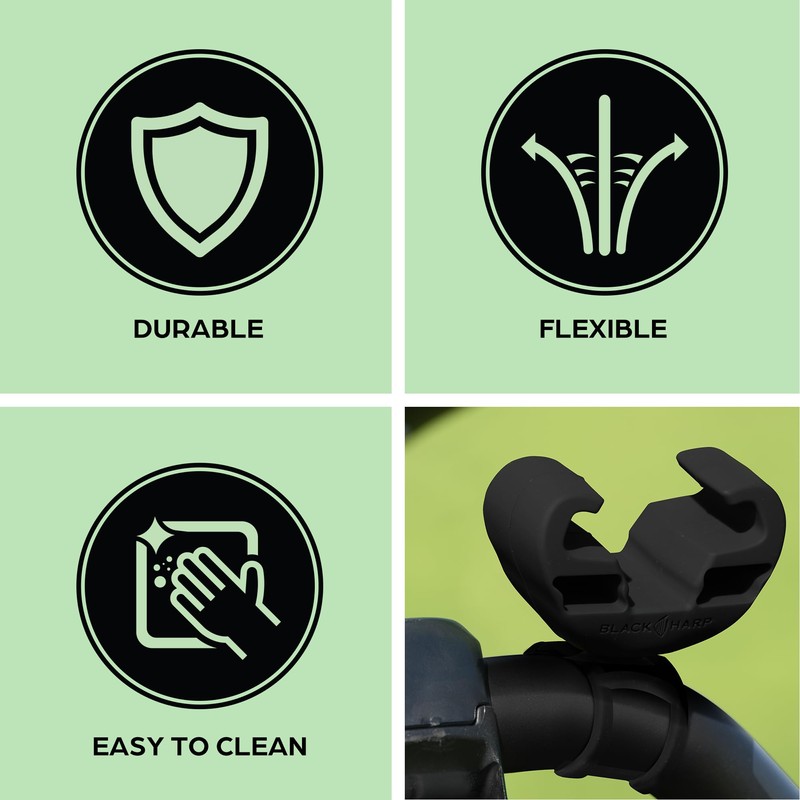 Black Harp Golf Push Cart Phone Holder - Silicone Phone Mount Compatible with Clicgear, Sun Mountain, Caddytek, Rovic, Caddy, Bag Boy & More- Golf Push Cart Accessories for Cell Phones