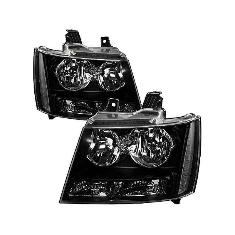 Black Housing Headlight Assembly Compatible with 2007-2014 Chevy Avalanche Suburban Tahoe,Clear Driver and Passenger Side Lamps