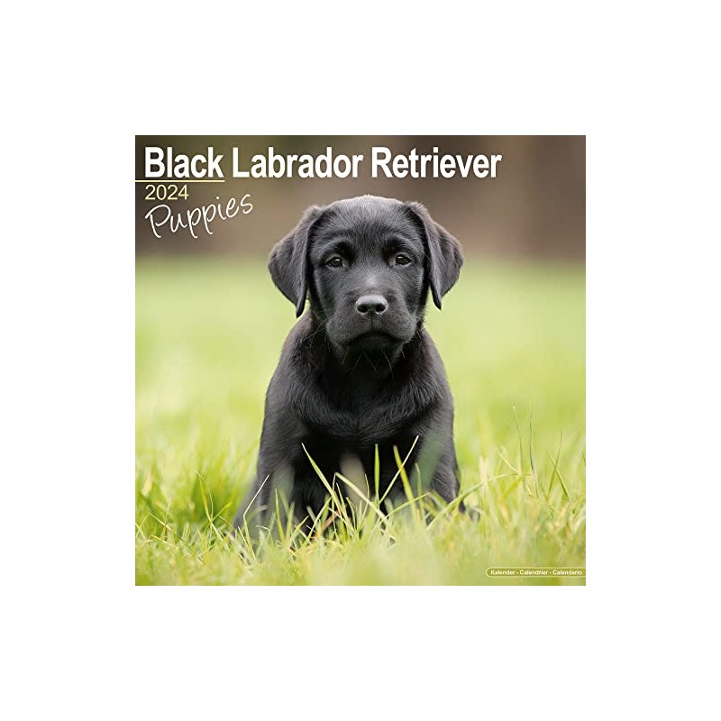 Black Labrador Puppies Calendar 2024 | Square Dog Puppy Breed Wall Calendar - 16 Month