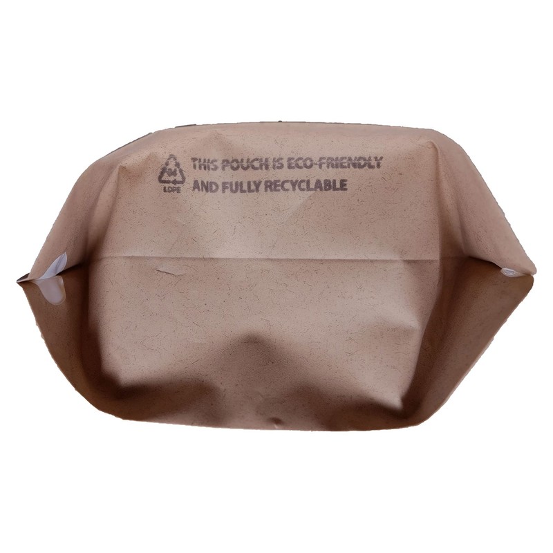 - Stand-up bag with resealable snap closure and base angle. Dimensions: 16 x 23 cm.
