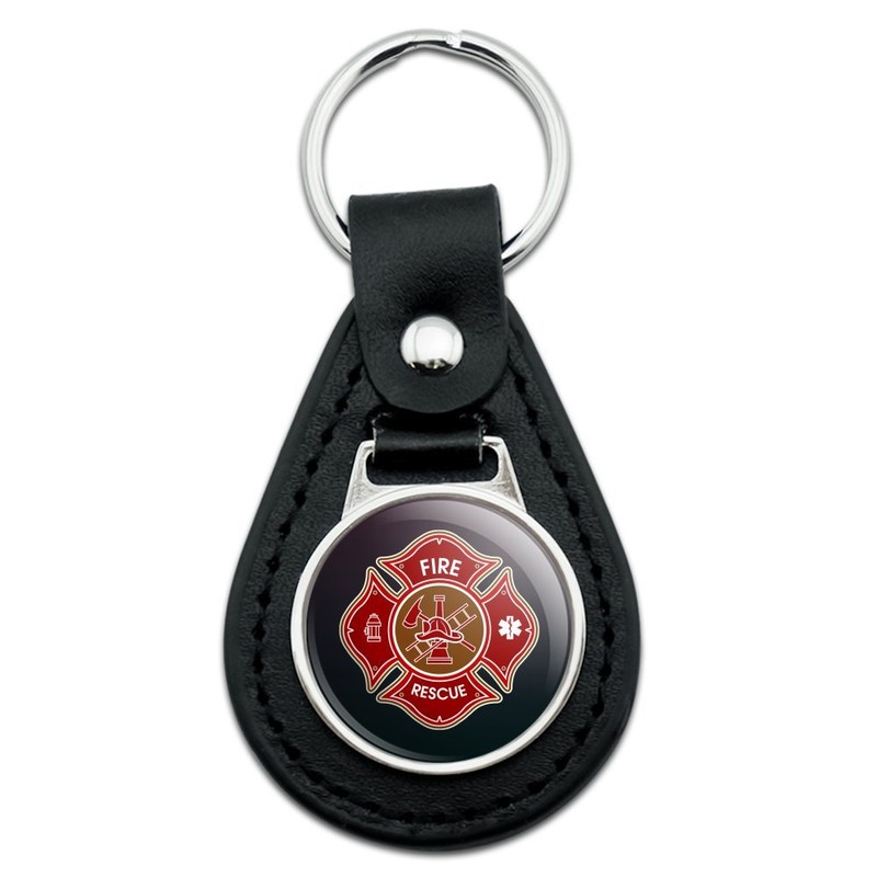 - DURABLE RESIN-TOPPED DESIGN - This Firefighter Fire Rescue Maltese Cross leather and metal key chain features the Firefighter Fire Rescue Maltese Cross design shown encased in resin, and mounted on a nice black leather backing.