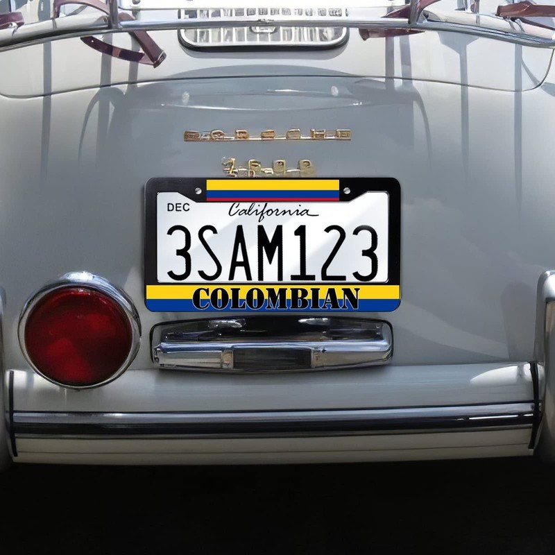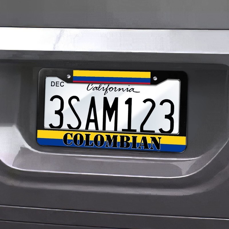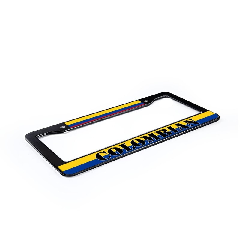 Black License Plate Frames Colombian Flag Aluminum Plate Frame 2 Holes Weather Resistance Pair with Screw Caps Universal Car Plate Frame for Car Decorative Parts 6" X 12"