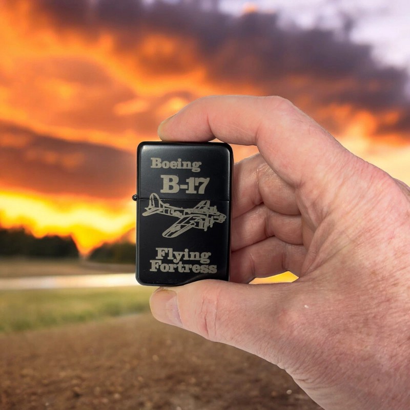 Star lighters showcase designs to play up your personality while providing you a sustained flame with every use. Features matte black finish lighter and black tin case. measures 1-1/2" x 2-1/4" x 1/2". Gift boxed for that special person. Matte Black Finish Tin Case Lighter Measures 1-1/2" x 2-1/4" x 1/2". Its windproof design ensures a consistent flame, making it the perfect choice for outdoor adventures. Laser Engraved