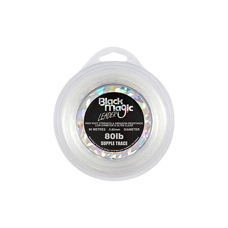 This Black Magic Supple Trace Leader is manufactured from Japanese copolymers. It is supple, sensitive and features high abrasion resistance. Great knot strength, low diameter and ultra clear - this leader is excellent for a variety of uses. Plus it's packaged into a compact dispenser pack that fits in your tackle box or Leader Feeder, which means you can always reuse it again as a lure holder. Mint!