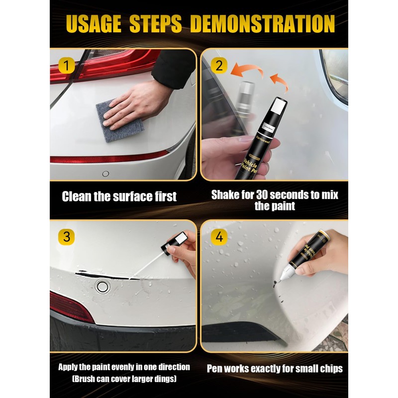 - Pro Tips & Reliable Support: Practice First: Test car paint pen on scrap metal/cardboard to master control and paint flow. Application Tip: Use the "connect the dots" technique, brushing steadily in one direction for even coverage. Proper Storage: Securely tighten cap after use to prevent drying