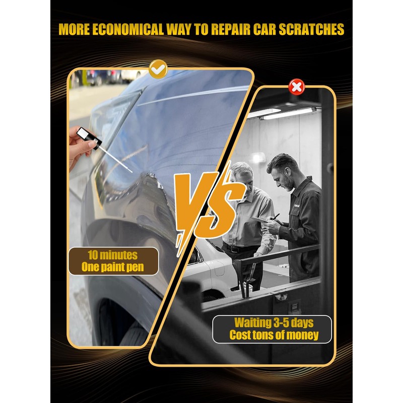 - Quick, Easy & Professional Repair: Effortlessly fix scratches in 3 steps: Clean → Shake (10-20 sec) → Apply. Features a dual-tip car scratch remover applicator (precision pen + fine brush) for versatile use on various scratch sizes and depths. Apply thin coats; for deeper damage, add layers after 5-10 minutes drying. Polishable once fully cured for a smooth finish
