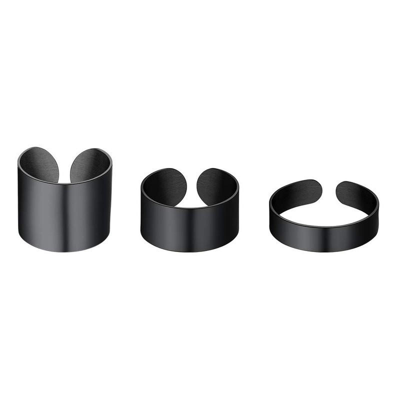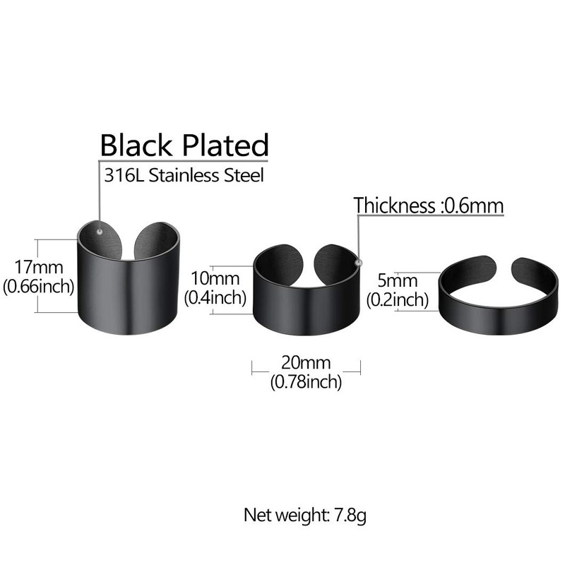 Black Mens Ring Set 5mm/10mm/17mm Wide Adjustable Stackable Rings Stainless Steel Hip Hop Jewelry