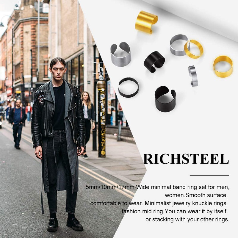 • Design: 5mm/10mm/17mm Wide minimal band ring set for men,womenSmooth surface, comfortable to wear Minimalist jewelry knuckle rings, fashion mid ringYou can wear it by itself, or stacking with your other rings