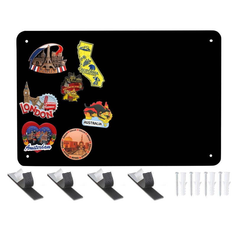 This sturdy black metal board organizes and displays your magnets against a glossy, high-contrast background.