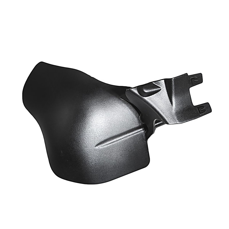 Scoop shape captures the moving air and uses the flow to direct the heat down and away from the rider to improve comfort
