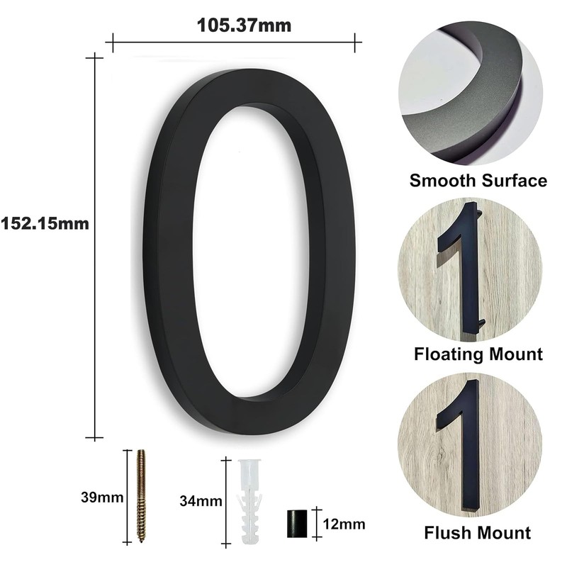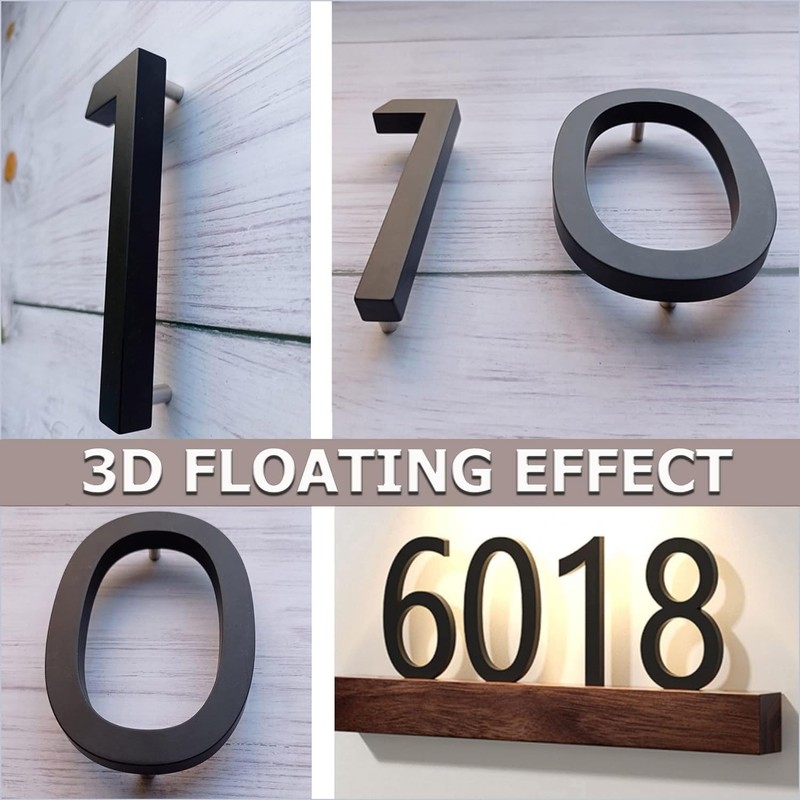 - Black Modern House Numbers For Outside, 6 Inch 152mm Metal Home Address Number Sign Plaques 3D Floating Door Numbers Mount Aluminum Home Address