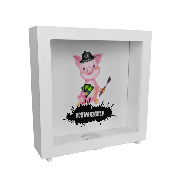 - Box contents: 1x black money frame money box made of wood with piggy motif