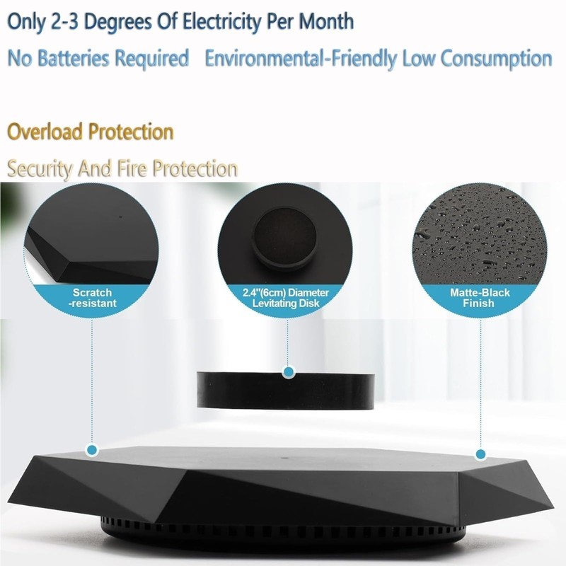 - Greater Load-bearing CapacityLevitating display stand supports up to 14 ounces (400g). Power with DC transformer to make this levitating decor stand Plug-and-Play & run indefinitely The magnetic floating stand decorates your room all year round and the sense of technology is always available! It has low power consumption, making it energy-efficient