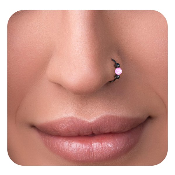 Black Nose Ring Pink Opal 20 Gauge 925 Silver Black Nose Hoop, 8mm Inner Diameter Nose Piercing Hoop
