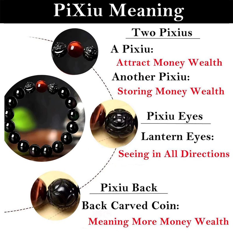 - 【Pixiu and Tiger Eye Bracelet】Pi Xiu also named Pi Yao, Pi Xiu swallows all things without letting it out.The tiger eye stone means money and fortune. Put the tiger eye stone in the middle of two PiXiu's , which can attract money and lucky for the wearer.Wearing black obsidian tiger eye Pixiu Pi Yao good luck bracelet can bring good luck and happiness.