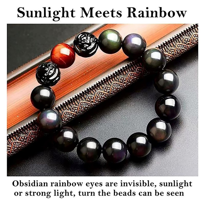 - 【Specification and Material】 Adjustable Stretch Bracelet Length: 6.7inches~7.6inches(17cm~19.5cm); Bracelet Inner Circle Circumference:6.7inches(17cm); Beads [Diameter: 0.47inches(12mm), Material: Rainbow Obsidian]; PiXiu [Diameter:0.47inches(12mm); Material:Rainbow Obsidian]; Tiger Eye [Diameter: 0.47inches(12mm); Material: Red Tiger Eye Stone].