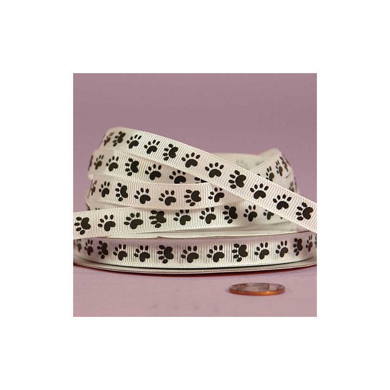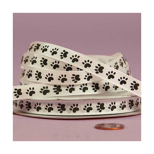 Black Paw Print Grosgrain Ribbon, 3/8" X 25Yd