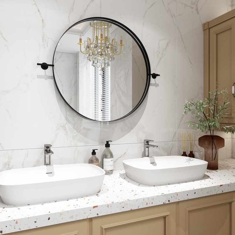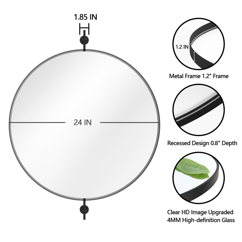 - Modern Design: Simple and modern design makes this black round metal framed mirror a great decoration for hanging in the bathroom, living room, bedroom, entryway or on any wall. This circular wall mirror will be a gorgeous part of modern home decoration.