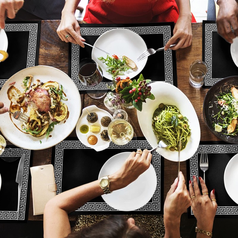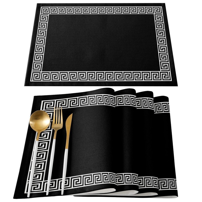 Black Placemats for Dining Table Set of 6, Cotton Linen Cloth for Square/Rectangle/Round Table Mat Placemat, Traditional Chinese Geometric Tile Pattern Kitchen Dinner Holiday Dテゥcor
