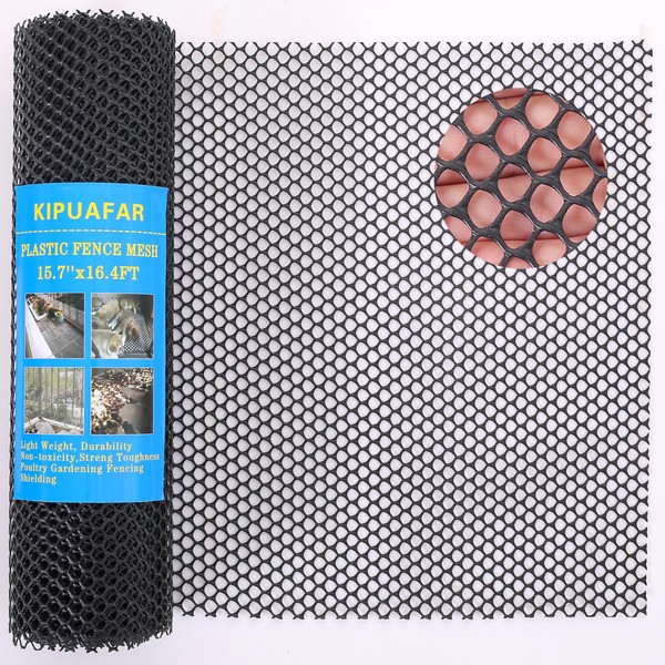 Pet Proof Barrier Net, Black Plastic Chicken Wire Mesh Fencing 15.7IN x 6.56FT, Balcony Cat Safety Net & Garden Snake Barrier, Heavy Duty Protection for Chicken Coops, Rabbit Hutches, Dog Kennels