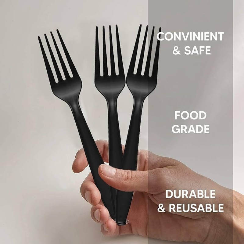 Black Plastic Fork Strong Heavy Duty Black Plastic Forks, Reusable and Washable Forks Perfect for Picnics, Parties, Tableware and Dinnerware- Pack of 150