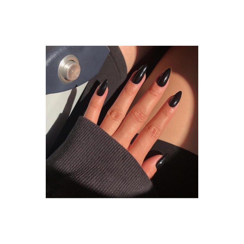 Black Press on Nails Almond Shaped Nails Press ons Medium Fake Nails Short Al...