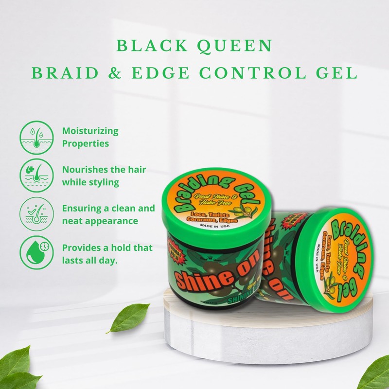 Black Queen Soft Hold Braid Gel for 4C Hair – Perfect Grip for Braids, Twists, Locs & Edges – Flake-Free, No White Residue – Unscented, Made in USA – 5.6 oz Bonus Size