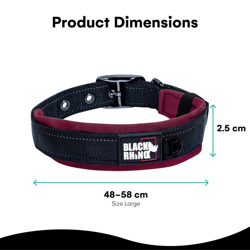Black Rhino Dog Collar for Large Dogs - Adjustable Reflective Heavy Duty Dog Collars with Ultra-Soft Neoprene Padding - Weatherproof, Durable, and Comfortable for Active Dogs - Burgundy and Black