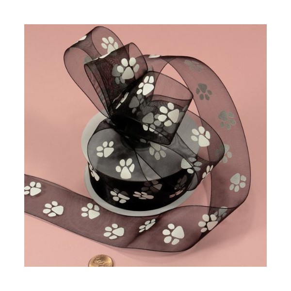 Black Sheer Paw Prints Ribbon, 1-1/2" X 25Yd