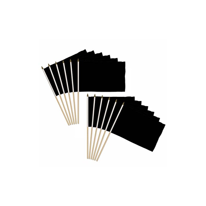 Black Solid Color 12x18in Stick Flag - 1 dozen pack