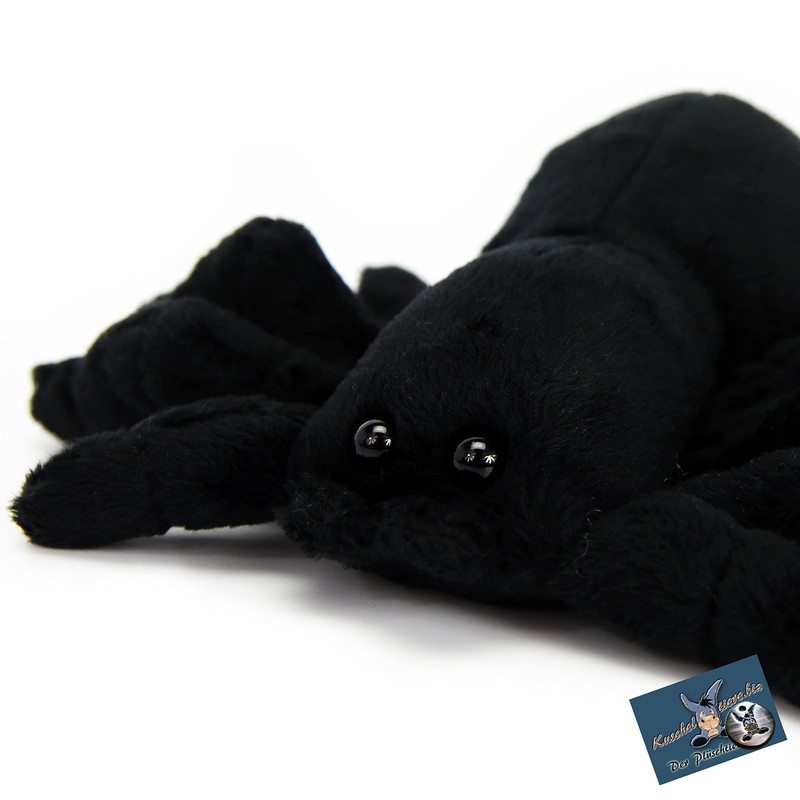 - Cuddly soft – beautiful, cuddly soft plush spider in and with a great design. The particularly short pile plush is really beautiful black. The cool spider is well hit and has a particularly attractive appearance.
