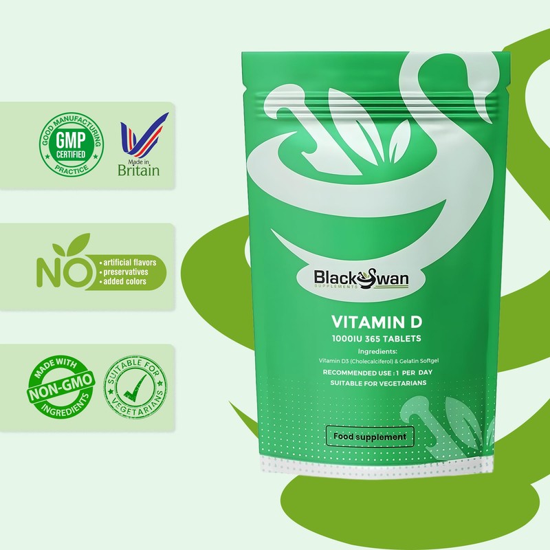 Black Swan supplements Black Swan Vitamin D 1000iu Tablets - Immune System Bone Health Enhanced Mood Focus Mental Clarity Vegan Supplement - 365 Tabs 12 Month Supply