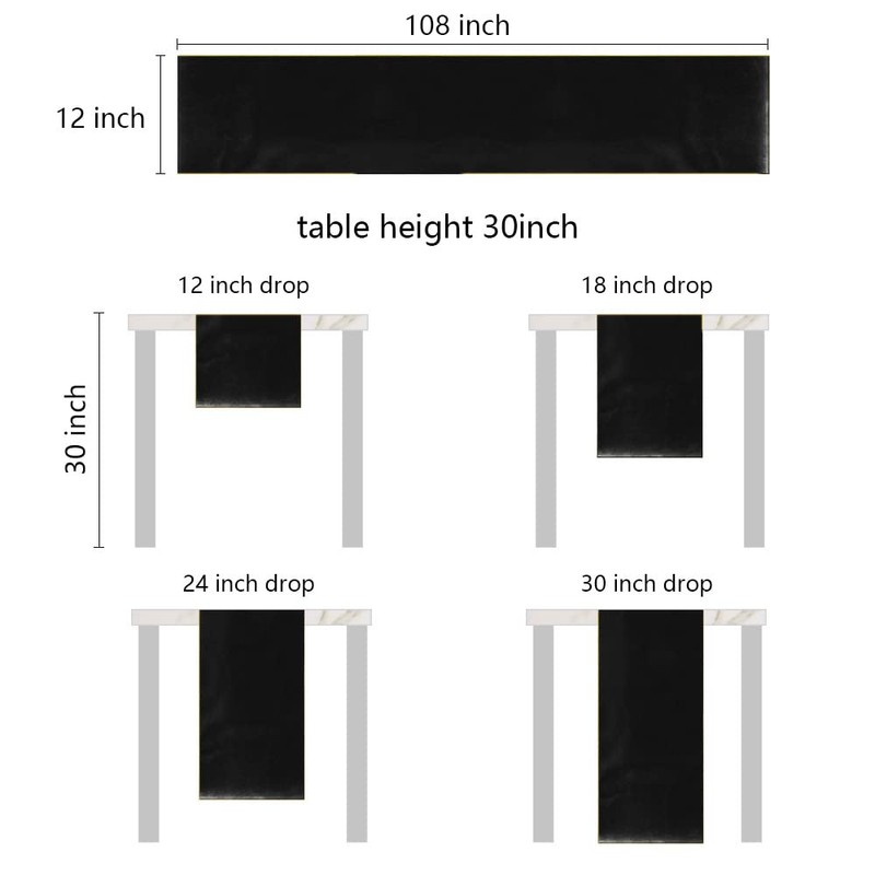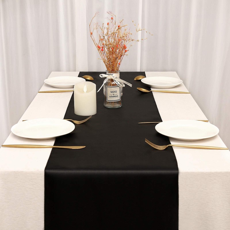 - 【Package】 Including 5 packs black satin table runner each size 12x108 inches that can seat 8-10 people, and enough quantity for multi-person party decorations.