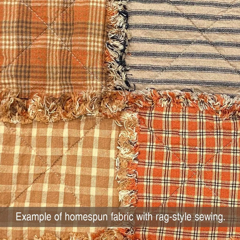 - Homespun fabric is perfect for crafts and rag style quilts because it is the same on both sides and thus never has a wrong side. This is NOT heavy upholstery weight fabric.