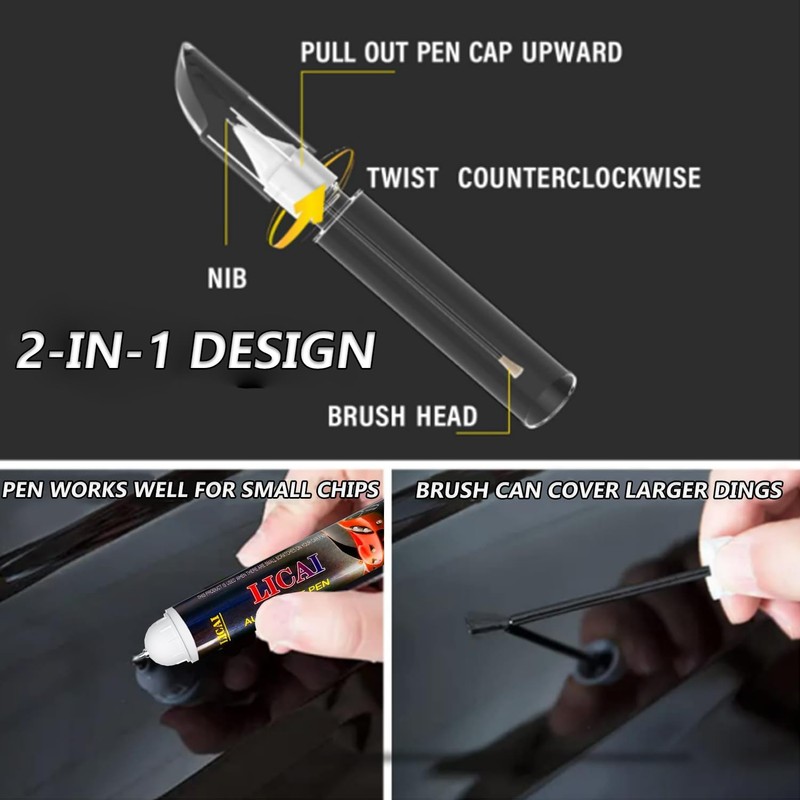 - 2-in-1 design - Our black touch up paint for cars is a double-ended design with both a metal tip and a brush, making car paint scratch repair more accurate and easier. The metal nib is for repairing small chips, while the brush is good for those larger or longer scratches
