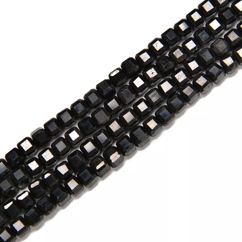 Black Tourmaline Faceted Cube Beads Size 4mm 15.5'' Strand (4mm)