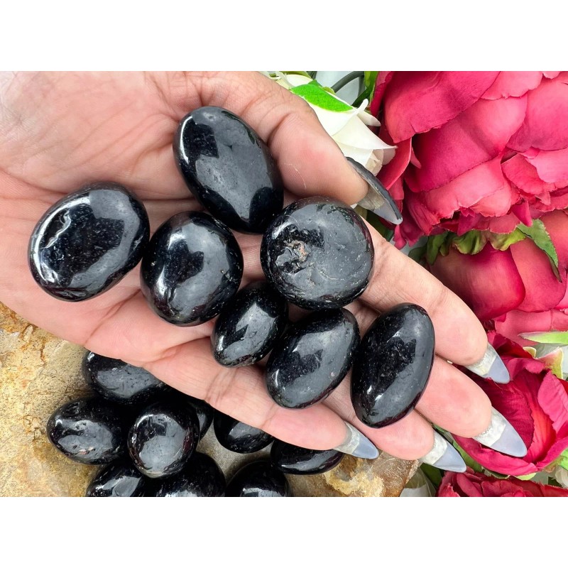 Black tourmaline tumble stone - tumbled black tourmaline stone - black