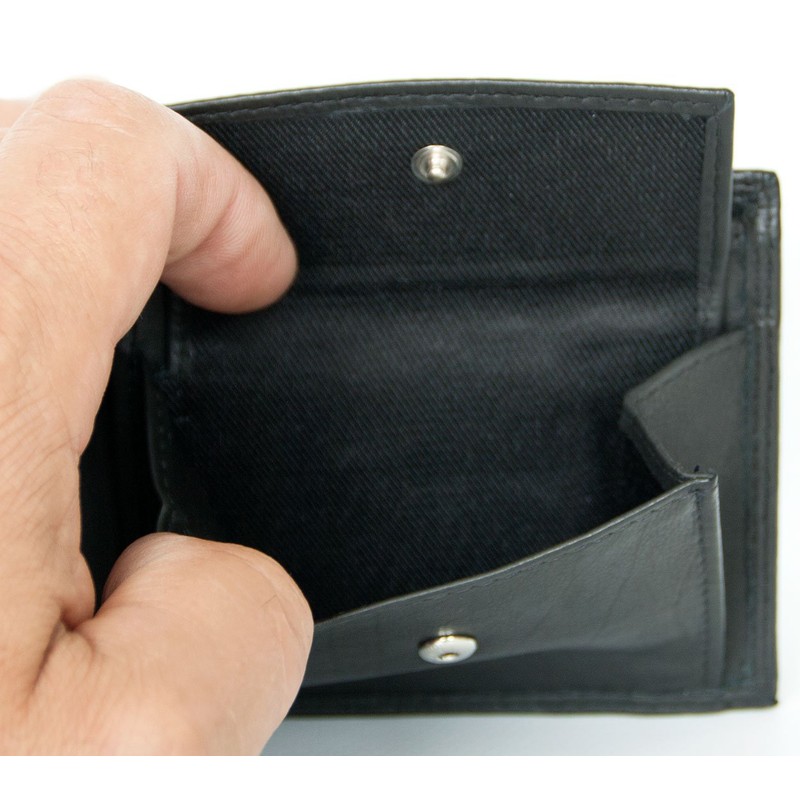 Black Trifold Compact Sized Soft Genuine Leather Wallet