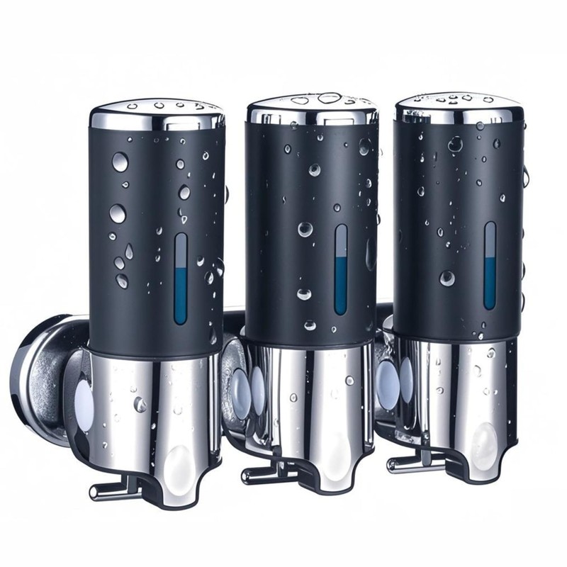 Black Wall Mounted Soap Dispenser for Shower, No Drilled WELLUP Shampoo Dispensers, 3-in-1 Chamber Bathroom Shower Soap Dispenser for Kitchen Bathroom, Matte Black