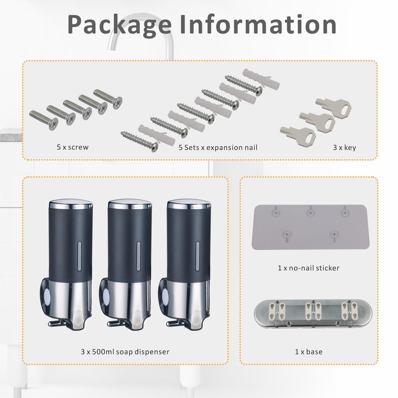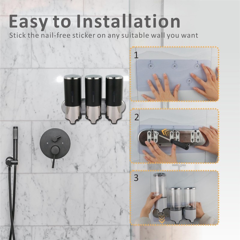 - Convenient Wall-Mount Installation: Install our shower shampoo dispenser effortlessly using the no-drill adhesive or choose screw installation to fit on any smooth surfaces. These installation methods enhance your efficiency and keep your bathroom organized(Note: Please tear off the white protective film before using)