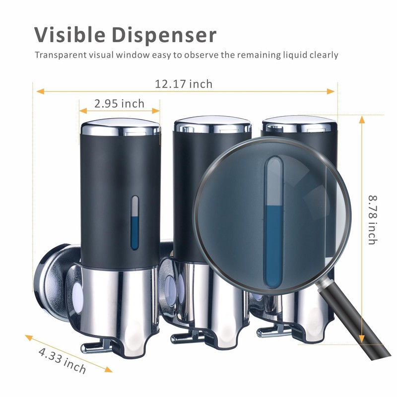 - Large Capacity with Clear View: Featuring a 17oz/bottle capacity, this shower soap dispenser wall mounted features a transparent window that allows you to easily view the remaining liquid levels. The wide opening at the top makes refilling a breeze, ensuring you never run out of your favorite liquids